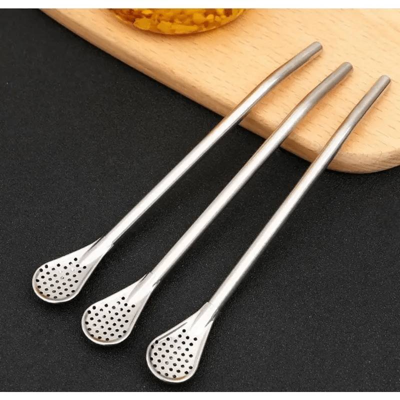 The tree spoon straws are made of 304 food-grade 18/8 stainless steel, innoxious, have no peculiar smell, reusable and durable eco-friendly design. Its multifunctionality makes it a practical spoon for filtration, straw, and stirring.